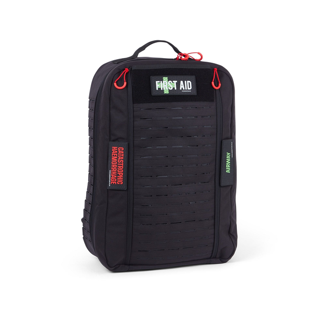 The MERE Mass Casualty Response Bag is designed to treat up to 16 casualties. It features 8 tear-away pouches stocked with TCCC-compliant supplies, including adult and child tourniquets, and aid memoirs for quick, effective bleeding control.